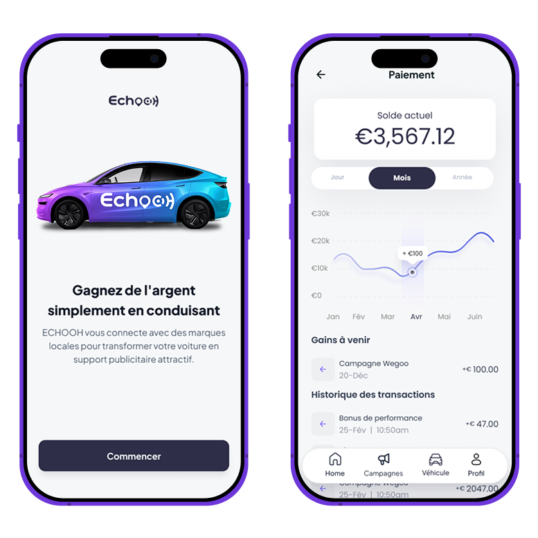 Roulez, Installez l’application ECHOOH Driver et inscrivez-vous pour rejoindre notre réseau.